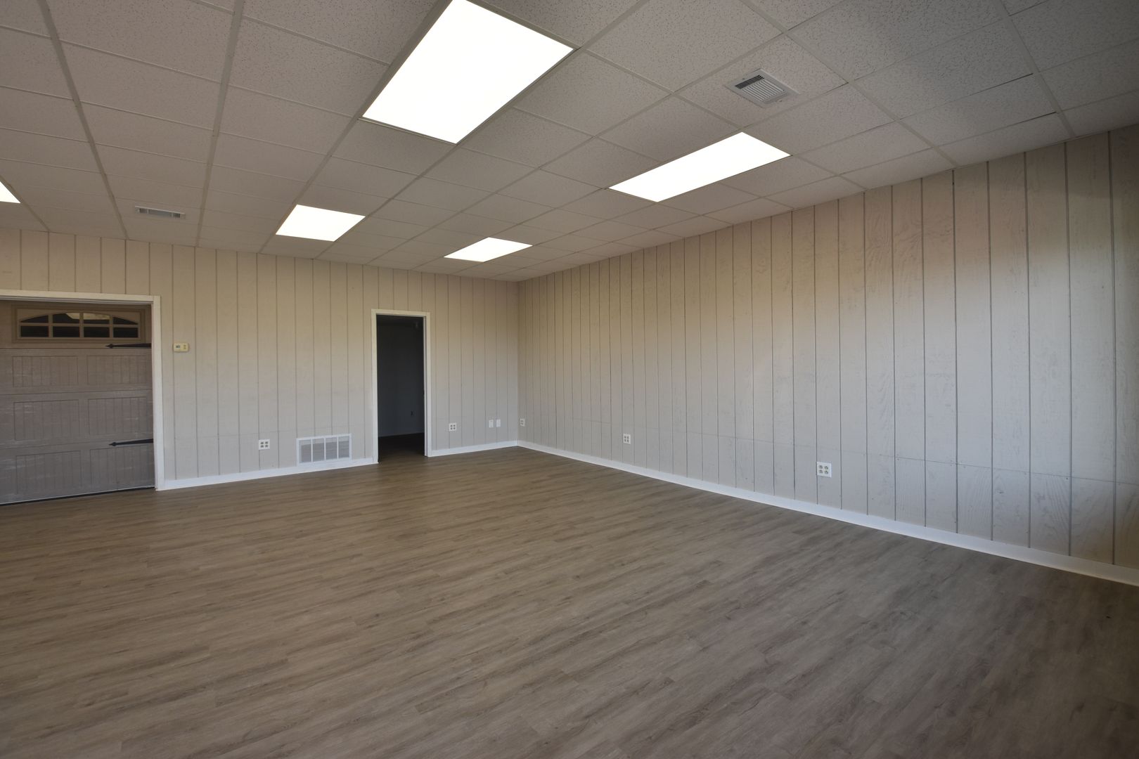 Frontage on US Hwy 40 in Greenfield. This 40x32 space is adaptable for many uses. Consists of an open area at the front (possible showroom), small office or breakroom, bathroom and a bay/shop area with a side load overhead door. There is an overhead door between front showroom and shop in the back so easily opened up or closed off depending on usage. New LED lights in main area. Some build out may be negotiated in. This is the eastern section of the building. Has been a Garage Door Company storefront for several years then an HVAC company. There is one adjacent Tenant. Tenant to split Lawn, Snow and Trash (dumpster) expenses with other Tenant in the building. Front area is 31' x 23', Shop area is 22'9" x 14'10", Office/Breakroom 7'11" x 8'6" plus there is a bathroom. Minimum lease term is through July 2027. $1595/month through Aug 2026 then $1800/month through August 2027. If you see this on any other site, go to FISHRENTALPM.com and click on AVAILABILITY to see if it is still available.